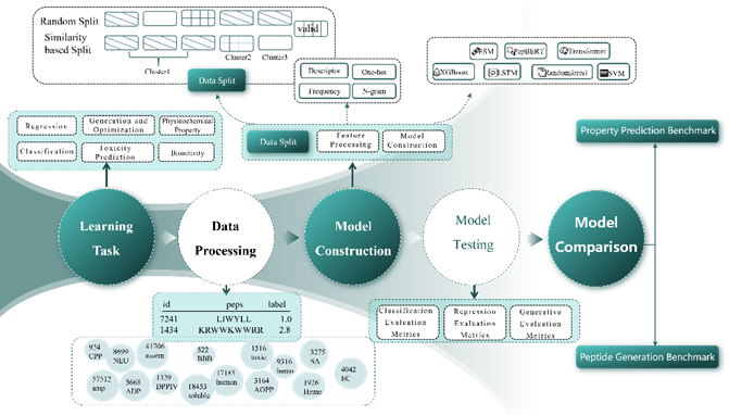 面向多肽智能建模与性质预测任务构建的大规模、标准化基准数据集。